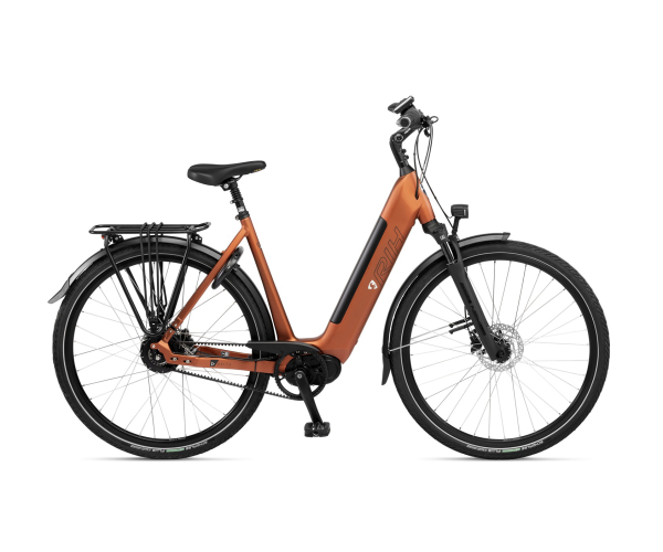 Deze uitvoering is afgemonteerd met een stille en vooral sterke snaar aandrijving, Suntour voorvork en een ander stuur voor een sportievere zit.